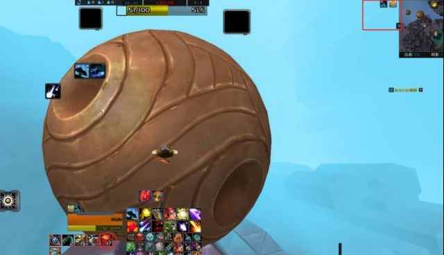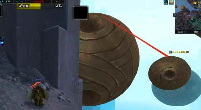 利用暗影之门飞到大球上,在跳起来瞬间按滑翔伞,我建议调整成俯视视角,同时鼠标迅速移到右上的buff区,当飞到小球上方时立即右键取消滑翔伞buff让自己落到球上,然后慢慢移动到那个小坑里,点击阀门获取任性精华。