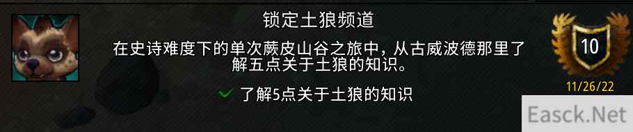 点击副本中的五个道具召唤古威波德向你科普土狼知识;其中四个道具要击败对应首领才能点击,还有一个在有名字的精英怪旁边,可以直接开。 |