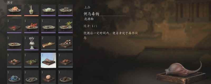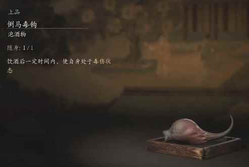 倒马毒钩是游戏中的一个酒食,这个酒食的品质是上品。效果是饮酒后一段时间内,使自身中毒。这个酒食是在过了盘丝洞-花间桥的一个中间有井的村落内,击败院子中的头目虫总兵后可获得。