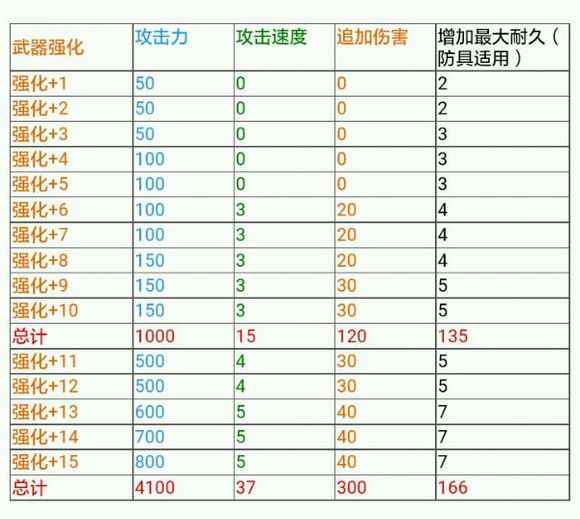 3、强化保护石 ①强化保护石:保护装备强化失败时不受到失败惩罚。(失败惩罚包括装备降级、碎掉、扣耐久最大值)。只能适用于强化上+4~+10的装备。强化成功不消耗,失败消耗。 ②+11幸运的强化保护石:保护装备失败时不受到失败惩罚。只能适用于强化上+11的装备。不管成功还是失败都会消耗。 ③装备保护石:保护装备强化失败后不会碎掉。但是失败后装备强化等级将会初始化,则变成+0。适用于强化+4~+15的装备。强化成功不消耗,失败消耗。 ④凯波乃的强化石:强化装备时,可以将其放入强化中(不与保护石冲突),将会增加10%的强化成功率。适用于+4~+15的装备,用后将会消耗。 ⑤装备强化+4~+15礼券:直接让你的装备到达对应的强化等级。 ⑤神奇的小刀:可以强化,将其视为0级的武器,没有攻击。当其强化到对应的等级后可以直接到奇怪的旅行者那里兑换装备强化礼券。 4、强化所加属性