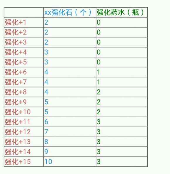 一、正文篇 1、强化入门知识 ①库汉的铁匠铺有一神匠,他名叫:福格斯。别名:万碎爷,老福。他拥有洛英三巨头之一的称号,并是三巨头之首。洛英三巨头:福格斯,布林,彼得。曾经艾琳大陆流传一段话:强化毁一生,附魔穷三代。 ②强化的装备包括武器,盾牌和防具。不能强化饰品和其他。 ③强化装备都能增加装备耐久度、装备发光程度,并减少装备重量。强化武器能增加攻击力,攻击速度,追加伤害。强化盾牌能增加防御力。强化防具能增加防御力,增加防具碎后具有的防御力。 ④强化上+1~+3级100%成功。 强化上+4~+5级会有概率失败,失败后会降低1级强化等级,并扣最大耐久度。 强化上+6~+8级会有概率失败,失败后强化等级会直接掉到+0,并扣最大耐久度。 强化上+9~+15级会有概率失败,失败后装备将会碎掉,返还部分制作装备材料和强化石。 ⑤碎掉的装备可以去库汉村旅馆的奇怪的旅行者那里赎回。赎回需要几千到几万的AP。赎回的装备永久绑定,不能交易,不能用任何加解绑卷增加解绑次数。赎回的装备再碎后将会永久消失,不能再赎回。 ⑥高强武器是指强化+11~+15的武器,低强武器是指强化+1~+10的武器,白板武器是指强化+0并且没有附魔没有精灵石的武器。不过洛英玩家交流中默认为高强武器是指+13~+15的武器。 2、强化所需材料 ①强化需要强化药水,xx强化石和少量金币。 ②0~19级装备。需要强化石。 20~39级装备。需要中级强化石。 40~59级装备。需要高级强化石。 60~80级装备。需要特级强化石。 90~110级装备。需要乐园的强化石。 ③强化所需强化药水数量和xx强化石数量(不包括金币)。