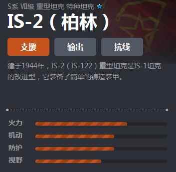 IS-2(柏林)是坦克世界S系重型坦克之一,主要产于1944年。该坦克各项性能比较优越,且生命值较高,在团队中主要定位是支援、抗线作用。那么作为特种坦克,IS-2性能具体如何呢?配件又该怎么选?小编下面就将带来坦克世界S系重坦IS-2(柏林)介绍,希望大家喜欢。 《坦克世界》礼包版下载地址:点击查看 《坦克世界》S系重坦IS-2(柏林)介绍 特点