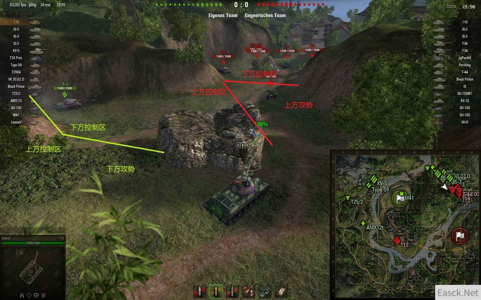 下方 攻势时速度快的重坦卡这个位置,守势就别来了。
