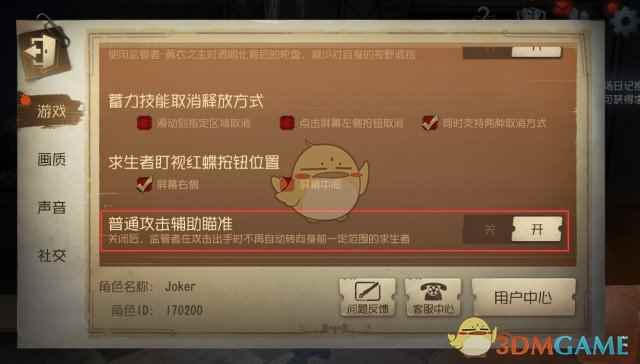 设置界面新增监管者攻击辅助功能的开关,关闭后,监管者攻击时将不再自动转向求生者。