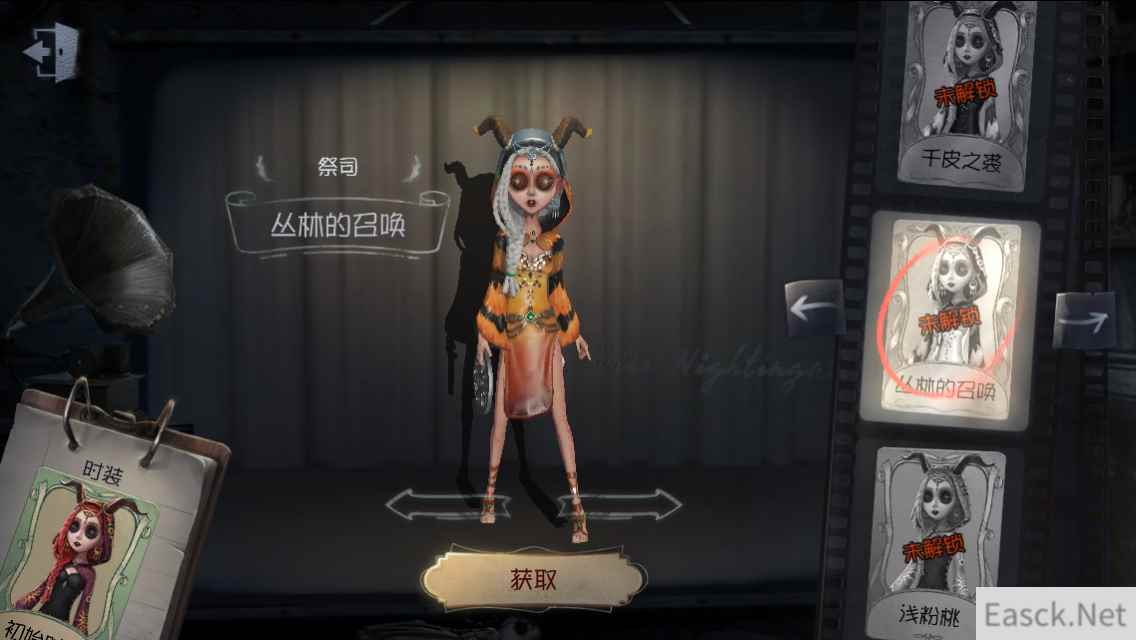 《第五人格》中祭祀的机动和紧急逃脱能力非常强,而且非常神秘。这里我们就来看一下祭祀新皮肤丛林的召唤吧,想知道这个时装怎么获得,就来看看下面的介绍吧。 祭司时装大全 丛林的召唤 获取途径 第三赛季精华1 穿戴方法 点击右下方笔记本,打开人物界面--对应人物--左侧相片--时装选择已获得时装,点击“携带”进行穿戴。 静态图