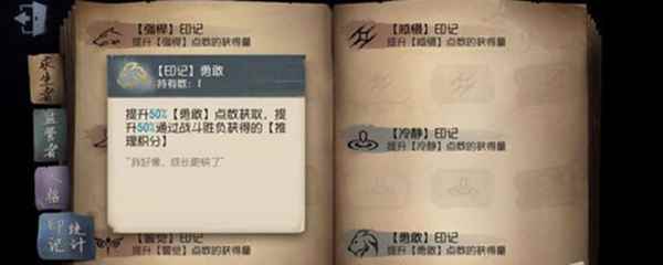 如果获得了印记,可以在日记右侧会多出一栏 有了印记后,在游戏准备的界面,我们会看到左下角有一个小问号的图片,点击就可以用了 然后选择进入印记选择界面,我们点击相应的印记,既可以在游戏中使用了 注意每次只能使用一个 |
