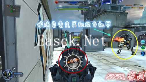 当然,你也可以和队友一起打右路,首先摧毁敌方炮塔(神盾激光炮高输出)一个弹夹就能消灭掉。