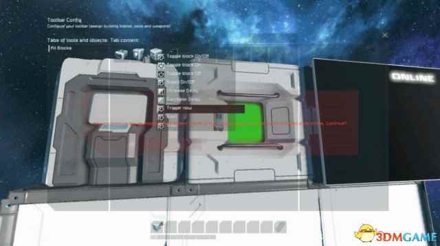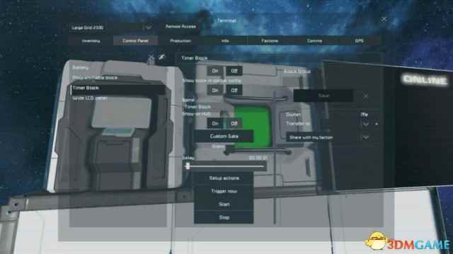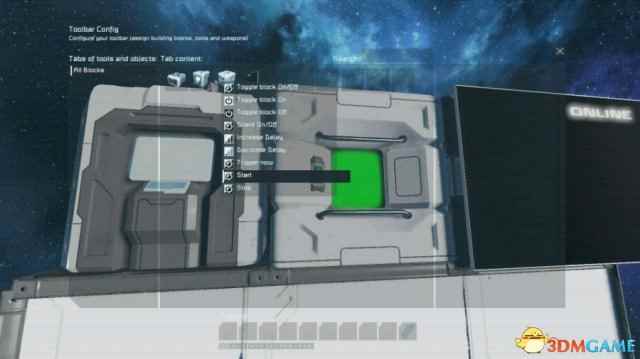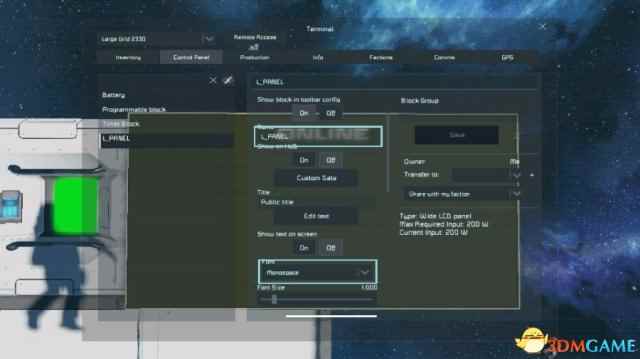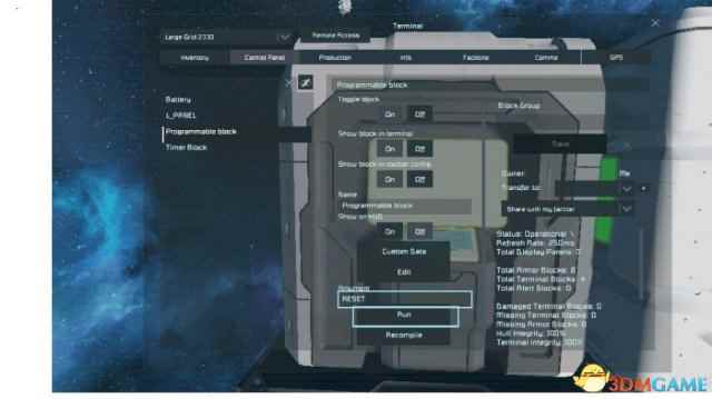 简介:在LCD上显示船体完好度 实用性:中 我们需要这3个方块来启动程序(推荐使用长板子,当然你做正方形的船或者原型船也可以用1*1*1的LCD板) 注:电源自备 1.在程序块里找到有 workshop的地方,点开,选择本程序,写入,保存并退出 2.在K列表里找到时间块,将启动时间调到00:00:01 3.打开时间块的setup actions栏,然后这样 注意,在选择让程序快run的时候啥也别写,直接选左边的选项即可 4.在K界面打开LCD板的设置栏 LCD板的名字改为“L_PANEL” 然后下面换成“moonSpace”(这个选项的最底下) 如图 5.最后一步,先star定时器,然后在程序块里输入RESET,最后点RUN即可 效果: 未受到损失前(全绿) 删去一个制造机后,变红了一块(受损处) |