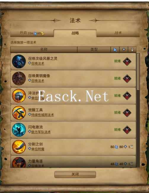 奇迹时代4怎么保存魔法 一些玩家在游玩奇迹时代4时对怎么保存魔法不是十分的清楚,本文将带来该游戏的魔法储存方法。 奇迹时代4怎么保存魔法 奇迹时代4已就绪的魔法可以跨回合保存。打开法术-战略即可选择已就绪的魔法。 这就意味着我们可以提前利用全局施法点数——即便全局施法点数不高,也能达到:刚拍下新城,就上一堆城邦buff;开战前一回合上一堆附魔省维护费;提前搓好一堆法术,接敌前直接爆发在敌方脸上等等效果。如下图所示: