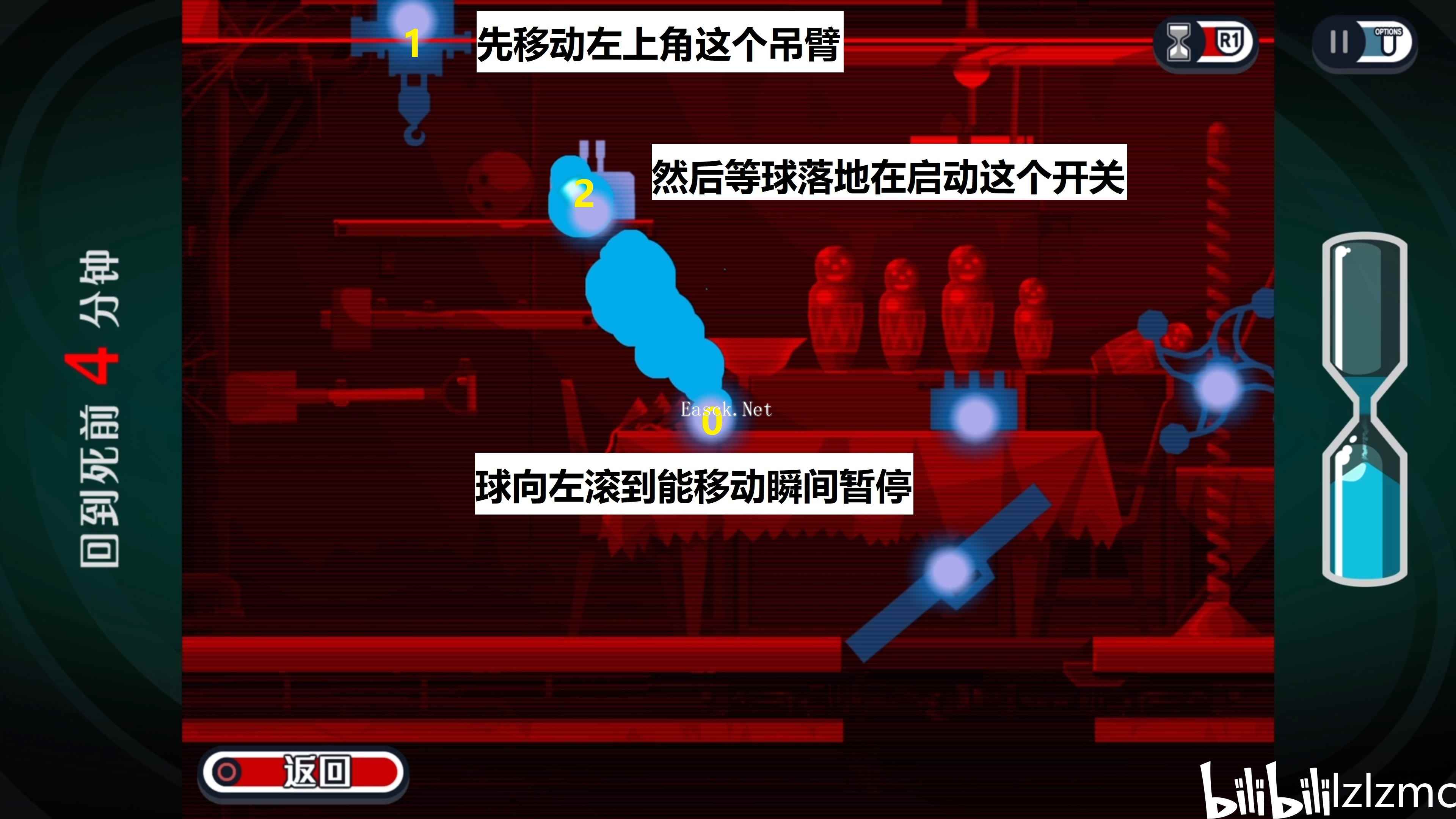 返回球处,等球慢慢往左滚,能够到工具箱的时候移动,先把左上角吊臂移开,然后等小球落地。(0,1,2的顺序)