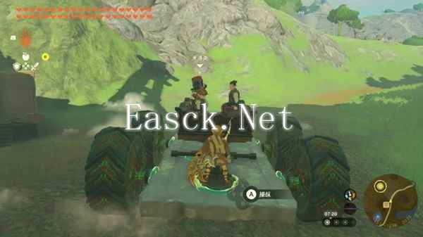 随后回到平原外围的驿站,和团长对话他会说车坏了,而且这次的路马车走不了,直接把旁边的大脚车拿过来,把乐团的小马车黏上去就行了。然后和团长对话,成员都上车之后直接上车,走吧!