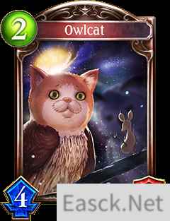 简介 进化前 被用恐怖的魔法和猫头鹰融合了的,可悲的公猫。在暗夜的间隙中飞翔,思想却在昼间的小巷之中奔驰。 进化后 眼前出现了猎物,那思想就飞到九霄云之外。吱……吱……吱……。回响的鸣叫声中,猫枭的灵魂被欣喜所填满。 详细资料 类型 随从 制作 50 职业 中立 分解 10/30 稀有度 青铜 CV 村濑步 PP值 2 卡包 诸神狂岚 卡牌效果 进化前 攻击: 2 体力: 1 交战时 若交战的敌方随从的攻击力为1,破坏该敌方随从 进化后 攻击: 4 体力: 3交战时 若交战的敌方随从的攻击力为1,破坏该敌方随从 语音台词翻译 登场时 狩猎的时间到了喵! 攻击时 这是食物喵!? 进化时 (叫喊声) 破坏时 再见了喵... |