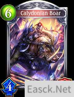 简介 进化前 侍奉女神阿尔忒弥斯的巨大野猪。为了制裁触犯神怒的人,被女神放逐至下界。 进化后 皎月满盈,圣猪威猛,大地震动。作为美丽女神的忠仆,对逆徒予以制裁。 详细资料 类型 随从 制作 200 职业 主教 分解 50/120 稀有度 白银 CV —— PP值 6 卡包 诸神狂岚 卡牌效果 进化前 攻击: 4 体力: 4 突进 战吼 使全部己方咏唱类结界的倒计数减少1 进化后 攻击: 6 体力: 6突进 |