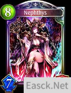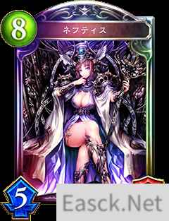 简介 进化前 冥府审判者。既以收割生者的死神之名被畏惧,亦以守护死者的守护神之名被崇敬 进化后 赐予生者以死之安息的冥府女神。净化遗留于世的负面情感,给予灵魂永远的解放。 详细资料 类型 随从 制作 3500 职业 死灵 分解 1000/2500 稀有度 传说 CV 日笠阳子 PP值 8 卡包 巴哈姆特降临 卡牌效果 进化前 攻击: 5 体力: 5 入场曲:从你的卡组中随机将不同Cost的随从(除了奈芙蒂斯)召唤上场,直至场上被铺满。然后,破坏这些随从 进化后 攻击: 7 体力: 7无 语音台词翻译 登场时 舞动吧,灵魂哟。以妾身之名 攻击时 你想安息吗? 进化时 那么,给予你死亡与安息 破坏时 让我们在冥府继续吧… |