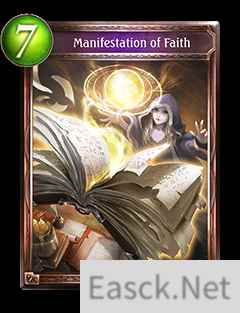 信仰的具现化,一张可以检索2费以下不同名倒计时护符的法术卡,虽然高达7费,不过在配合信仰偶像卡组来破坏还是有一定的价值的,不过在主教中2费以下的倒计时卡优秀的并不多,需要小伙伴自己来搭配和权衡了。