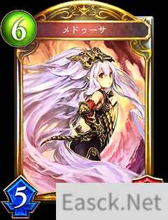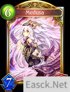 《影之诗》美杜莎,非常不错的6费攻击手,虽然6/5/4的身材并不高,不过技能破坏的杀伤力还是很优质,在常规的吸血鬼卡组中可以带一带。
