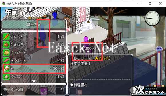 然后跟左边这个小蓝人对话,就可以看到下面这个米的价格变成-30000了,然后买买买就完事了