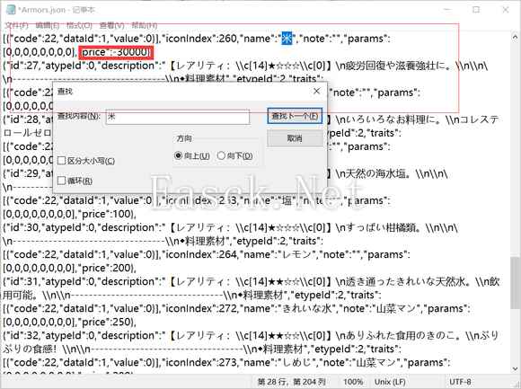 打开之后呢,Ctrl+F打开搜索,输入“米”,在这里把价格修改为-30000(其他的只要是负数就行)