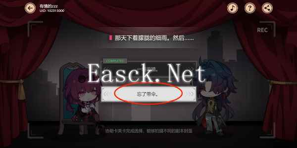 4、接下来刃出现了,我们点击刃进入下一个独白,选择【忘了带伞】。
