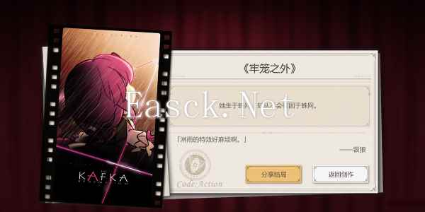 崩坏星穹铁道代号ACTION剧目五通关攻略。不少玩家可能还不太清楚这个活动的第五关怎么过,下面带来具体的介绍,供各位玩家们参考。 代号ACTION剧目五通关攻略 活动步骤: 1、进入活动页面我们点击开始游戏。 2、点击卡芙卡进入剧情独白,选择【已经定稿了】。