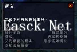 首席奥术师塔莉萨得到了一个关于堕夜精灵叛乱的消息,并且她需要你的帮助。 (!更多像我一样的人——对暮色守卫军使用“暮色百合印章”来辨别出5个叛乱人员。)夜之子中又很多成员在叛乱反抗军队。