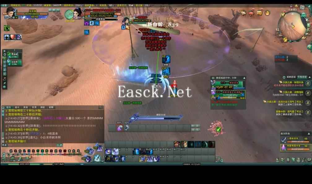如图所示,我放了一个封渊震煞防止对面突进技能打我。在站稳之后就可以依靠雪絮金屏的技能输出。在大漠楼兰里面,尽量把对方压在坡子脚下打,不仅可以规避伤害,还能最大化输出。