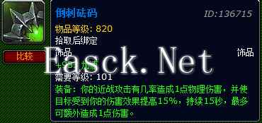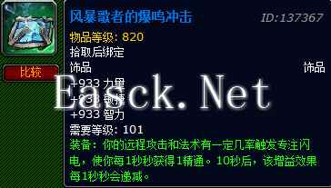 最近听人说我昨天又刷了一个风暴使者的爆鸣冲击,常驻敏捷,触发精通,叠加的,触发一次就20秒精通,不管多少,看着还不错,不过还没机会试一下。如果覆盖能到20%,那这个饰品就很好了。 小编点评:在目前只有这几个可入手的饰品中总结一下,附肢装等对增强萨满影响不大,但砝码必须于自身整体装等匹配,不能低自身装等太多,时光在装等高于他自身等级的时候已经不如常驻敏捷急速给力,建议舍弃。 |