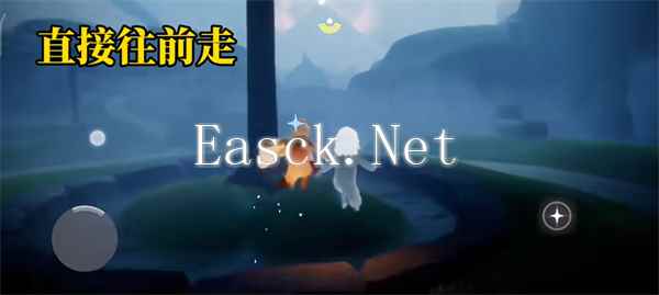 4、看完动画以后带着先祖一直往前走,这个需要被唤醒的石像就在蓝色星光所显示的位置;