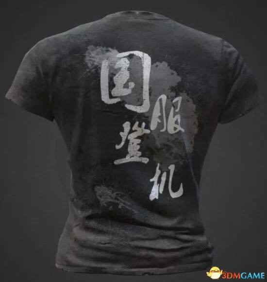 第七件是国服登机纪念服装,是纪念绝地求生登陆国服而准备的。 国服登机 背面: 背面印着毛笔绘画的“国服登机”字样,还有一点水墨的底纹。