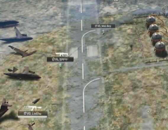 VG这里的位置就比较一般了,因为在房区位置有很多人,而到飞机那一片区域中间是一大片空地,很容易被打靶。 所以后面VG直接开车拉过去了。