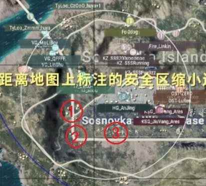 这个时候,场上通常只会剩下三队的样子,这时候我们就要根据处在天命圈内的敌人的位置去选择自己的点位了。