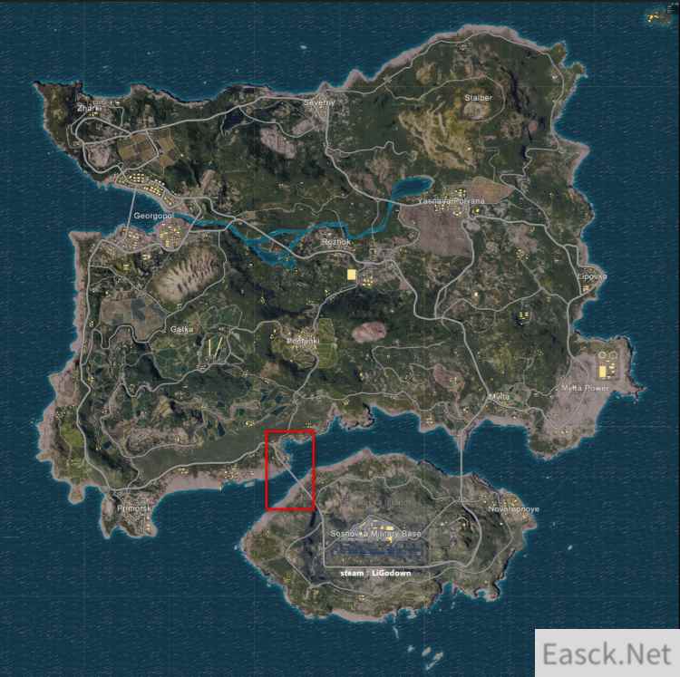 适用范围:打劫!打劫!还是打劫! 东桥和西桥是海岛地图上最著名的两个打劫点位了。根据圈的不同可以选择不同的桥进行蹲点,打劫时有几个注意点: 开上车来打劫,这样即使没有打到劫也可以开车转移。 车一定要藏好,不要被敌人看到了,敌人如果发现了有人在打劫停车僵持对两边都不好。 开枪千万不要着急,等待敌人开到没有掩体的地方在开火,这样即便停车了也没有很好地掩体可以进行对枪。 接下来推荐几个打劫时的点位 堵桥点位
