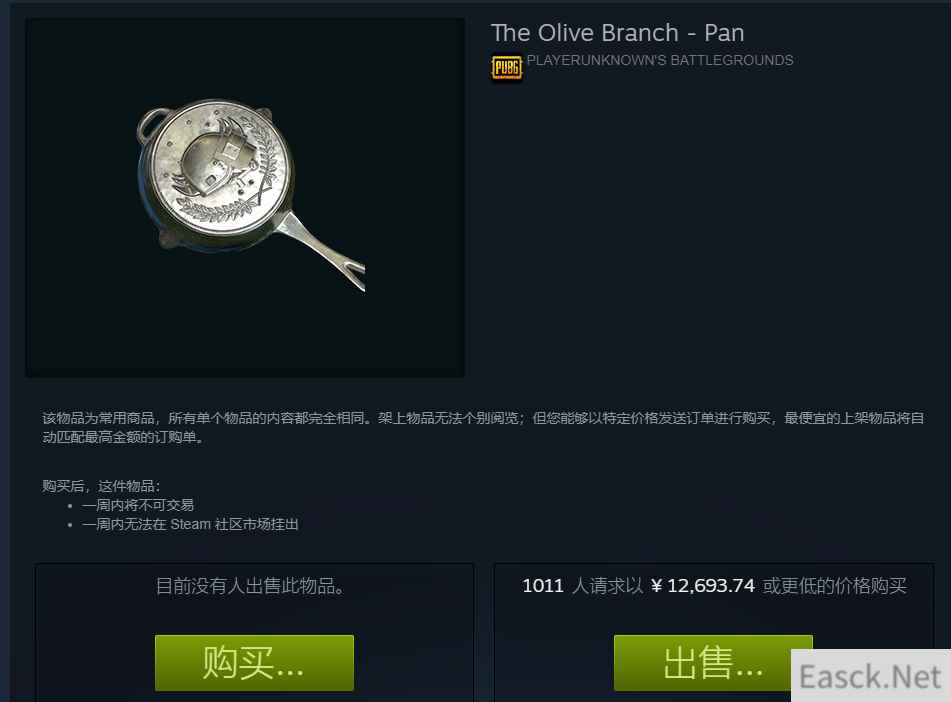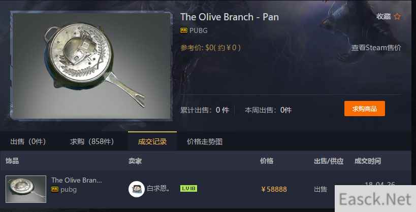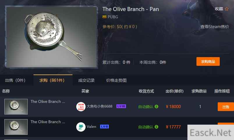 steam求购价格也很高然后就是相同一件武器的饰品数量,饰品越多,玩家选择越多,价格就越低。而锅目前除了人人都送的5000BP的锅之外,就只有这个黄金锅了,人人都有等于人人都没有,所以暂时绝地求生只有黄金锅这一个锅饰品。