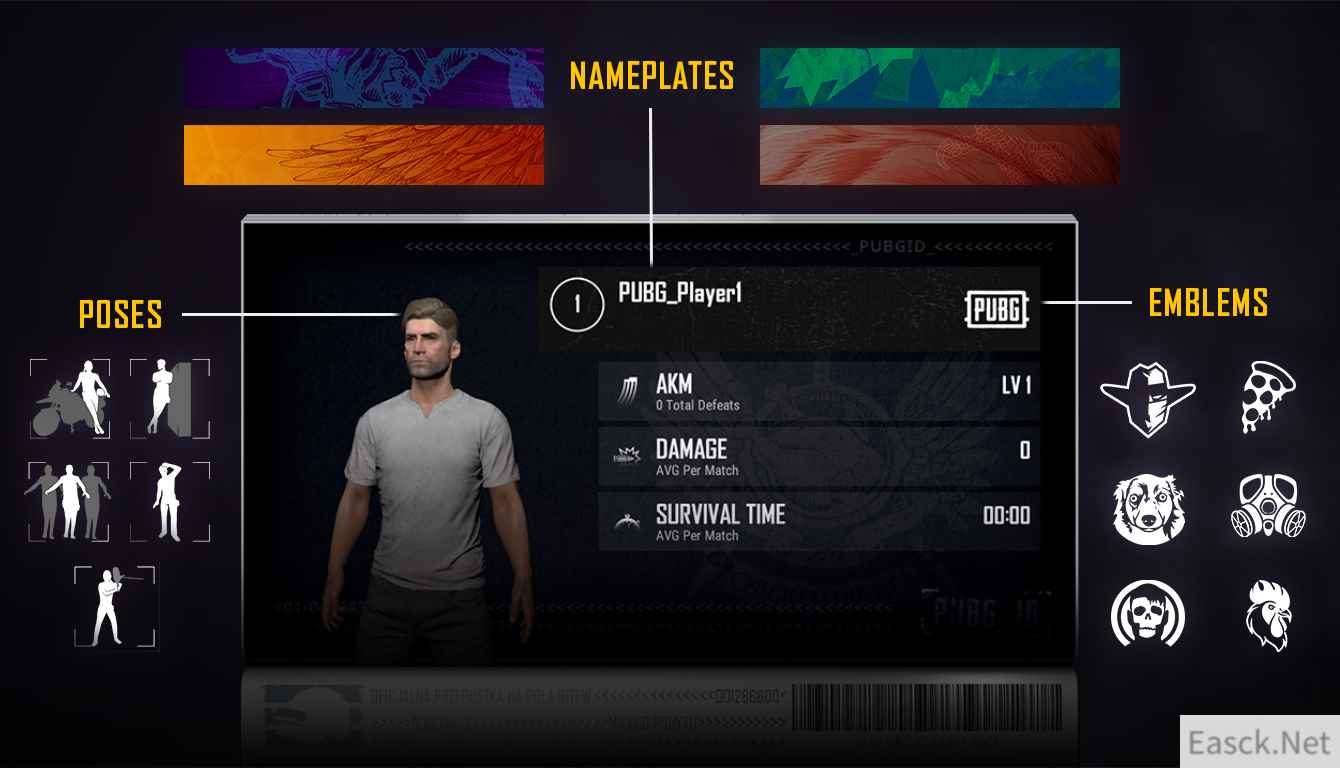 在生存熟练度即将上线之际,我们也很高兴能一并为您介绍另一项功能一一PUBG ID卡。PUBG ID卡是一个能让您展示自我和成就的新方式。您在生存熟练度中解锁的所有奖励,都将开启PUBG ID卡的新自定义选项。先让我们来一睹可供解锁的若干内容: