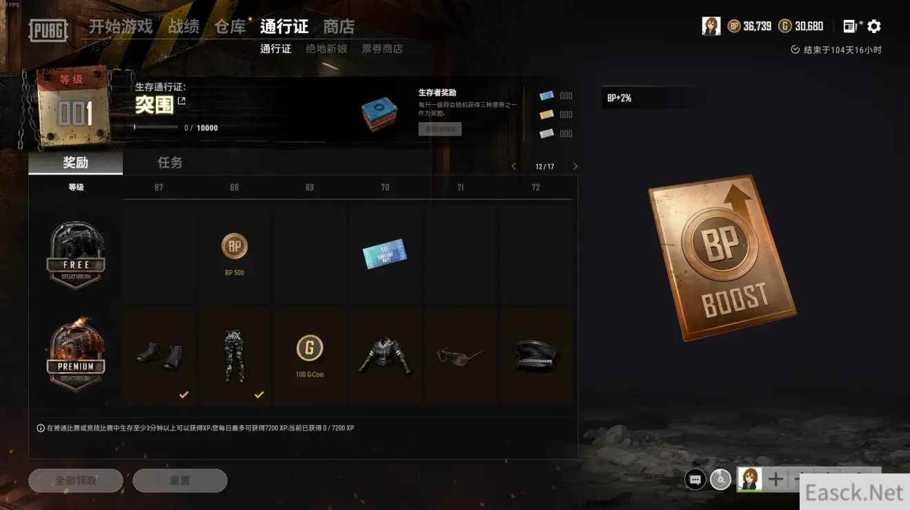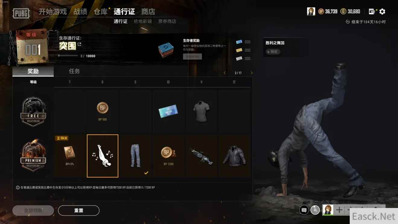 7-12级 上:BP 500,蓝色票券,POLO衫(深灰色) 下:BP+2%,动作-胜利之舞36,午餐肉的潜行者长裤,BP 1200,午餐肉-M249,午餐肉的潜行者夹克