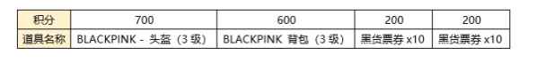 3级头-700积分 3级包-600积分 黑货票价-200积分,可兑换两次 每天拉满需要17天可以兑换玩所有奖励,为期一个月的活动时间也绰绰有余 ▼奖励图预览