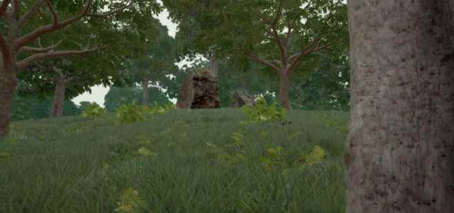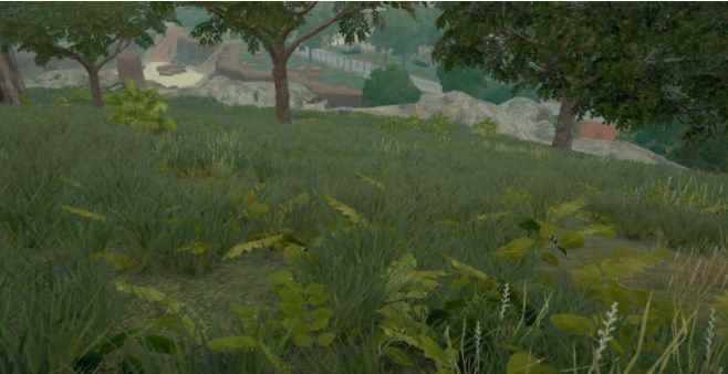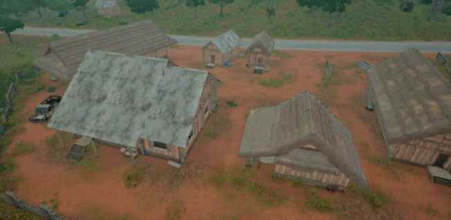 萨诺有不少大仓+收割机的组合,很多大仓前面都立着一个收割机。 这种收割机里,有部分是可以踩着上大仓楼顶的。 趴着 萨诺的草地很多,所以很多玩家喜欢趴着当老六,那么你知道趴在哪里最安全? 这是上坡看下坡的视角: