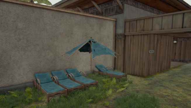 度假村上房技巧想必大家都知道了,就是一楼的阳伞。 扒上阳伞然后就能在度假村的楼顶飞檐走壁,在落地钢枪的时候非常好用。 大仓顶