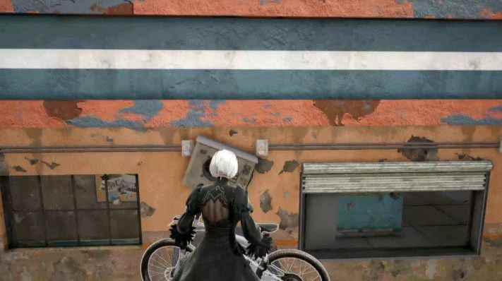 所以得出结论,安全性: 趴平底>趴上坡>趴下坡 巧用自行车 目前PUBG因为有道具自行车的原因,相当于玩家自带一个增高。 比如下图的加油站楼顶上不去: