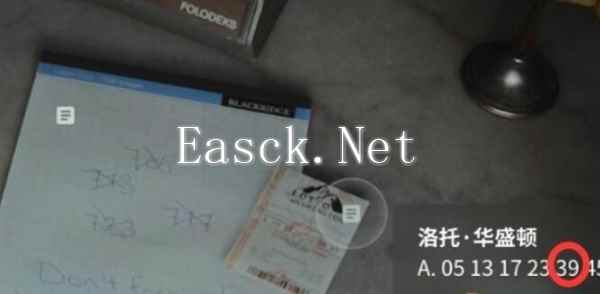 3、然后玩家们就会发现上面有四串数字被划掉。所以玩家们推测密码应该是第五个。