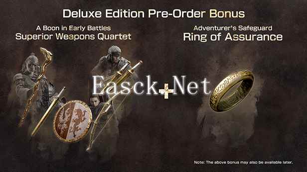 【普通版 预约特典】 ・初战的准备“特制武器4件套” 【豪华版 预约特典】 ・初战的准备“特制武器4件套” ・旅行伊始的守护“安心戒指” ※预约特典有可能在日后提供其他获取方式。 |
