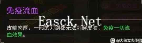 大侠立志传免疫流血天赋怎么解锁呢?很多玩家还不太清楚,下面给大家带来的是大侠立志传免疫流血天赋解锁条件攻略,一起来看一看吧。 大侠立志传免疫流血天赋解锁条件攻略 ![]() 免疫流血 获取条件:霖安城的云游道人会对你说有血光之灾,花5贯钱破解就能获得 |