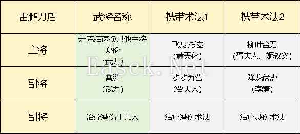 雷鹏肉盾 雷鹏本身是武力加成的武将,自带术法是吃武力加成的治疗术法 雷鹏定位上就是一个有输出且有治疗的武将 雷鹏同样适合开荒队伍,输出和治疗都是开荒关键的效果 队伍搭配思路:选择同样有输出+治疗的效果,最大化发挥雷鹏肉盾的特性。开荒结束后,队伍的坦度更不上,转型的时候,就考虑辅助减伤的工具人了。