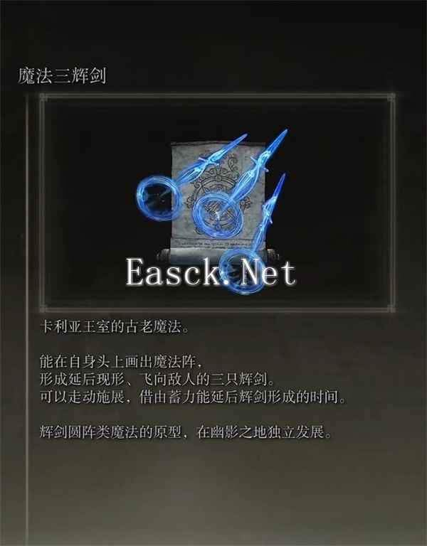 第四:魔法三挥剑 这个可以连续释放,距离和伤害中等,可以边走边放,可以骑马释放,属于dlc适用性很高的,以上三个都是老站桩魔法了,这个胜在可以高机动施法。