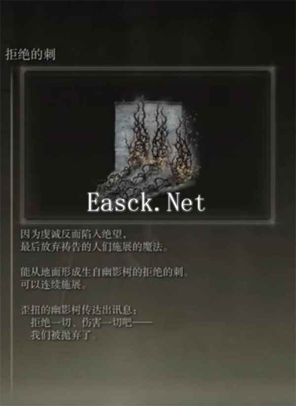 dlc新增魔法强度介绍 第一:拒绝的刺 bug的刺,累计出血拉塔恩都顶不住了。 必会被削弱,不削弱这就是本体加dlc第一轮椅。