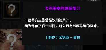 命运方舟料理图鉴获得大全 卡巴蒂安的陈酿果汁 材料: