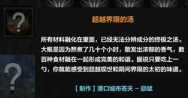 命运方舟料理图鉴获得大全 超越界限的汤 材料: