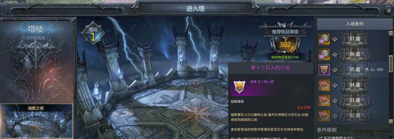 第十个巨人的心脏 获取方式{塔楼} 暗影之塔35层获得(480以上装等)