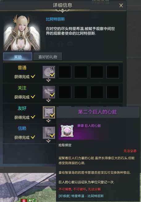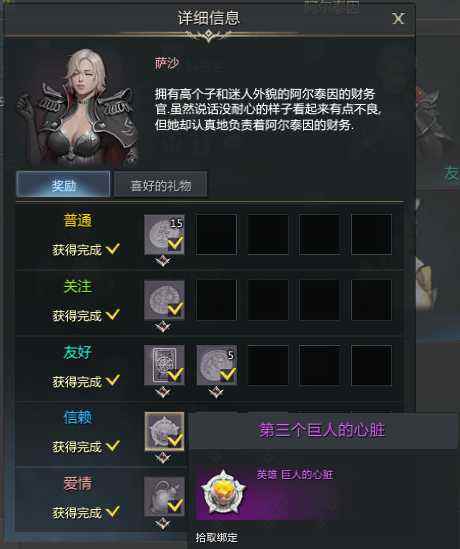 第三个巨人的心脏 获取方式:好感度-阿尔泰因大陆主城(休特仑)NPC萨沙达到信赖后获得。