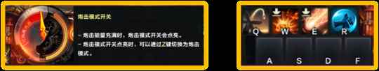 轻炮大师每次释放技能命中目标时,都会积攒一些炮击能量,当炮击能量满时,可摁Z键进入炮击模式 获得4个全新技能及霸体状态,但此时不可进行任何移动。